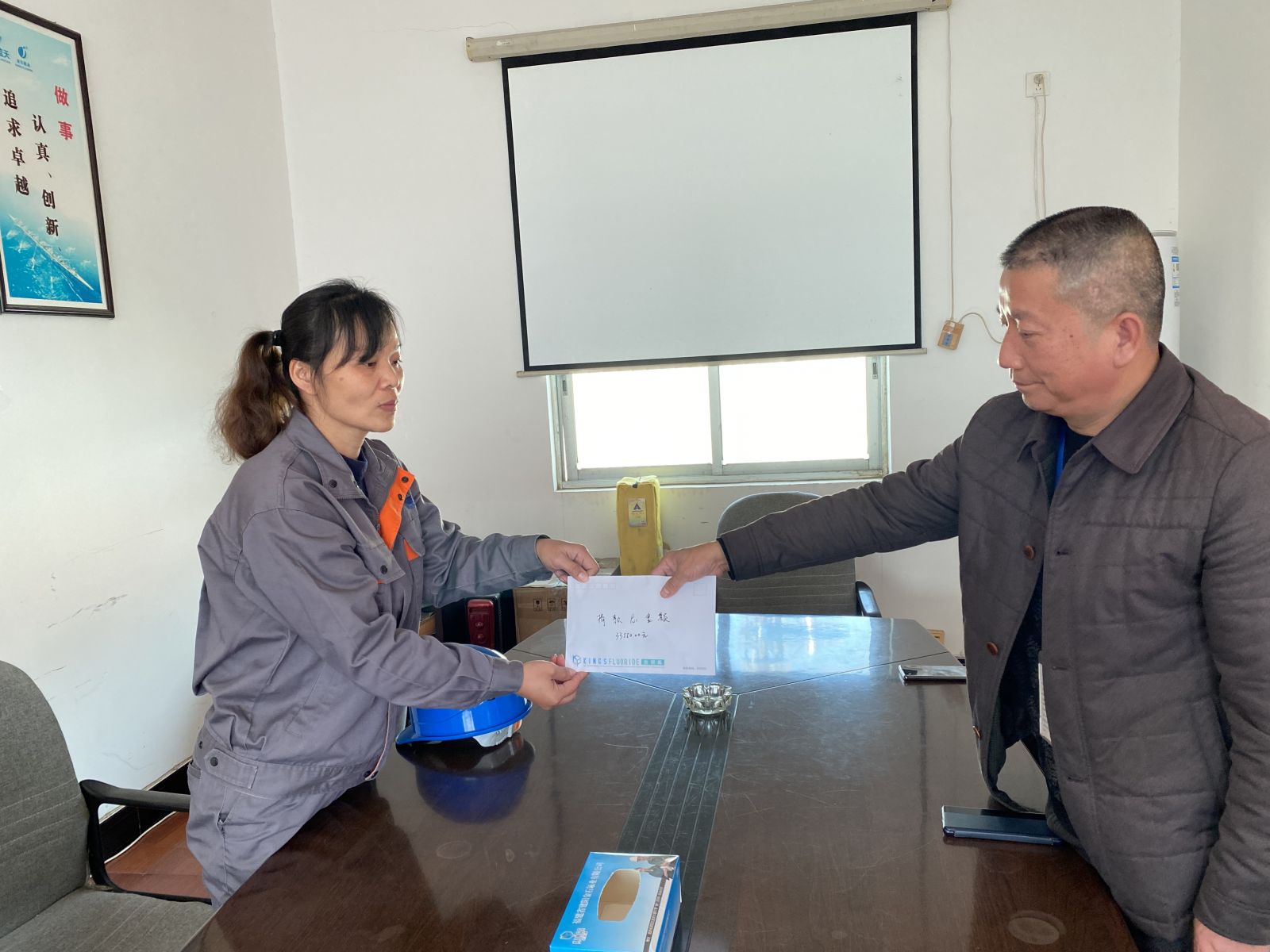 工會主席陳忠毅、副總吳子亮表示公司是每一位員工的堅強后盾,勉勵徐秀弟要堅定戰勝困難的信心,照顧好丈夫毛卓青并安心工作,用實際行動回饋公司的關懷,公司將繼續關注毛卓青的病情,并盡可能給予幫助。徐秀弟表示感謝公司領導及全體員工的厚愛,在家庭遇到困難的時候感受到了公司大家庭的溫暖,并表示一定埋頭苦干,盡心盡職做好本職工作。