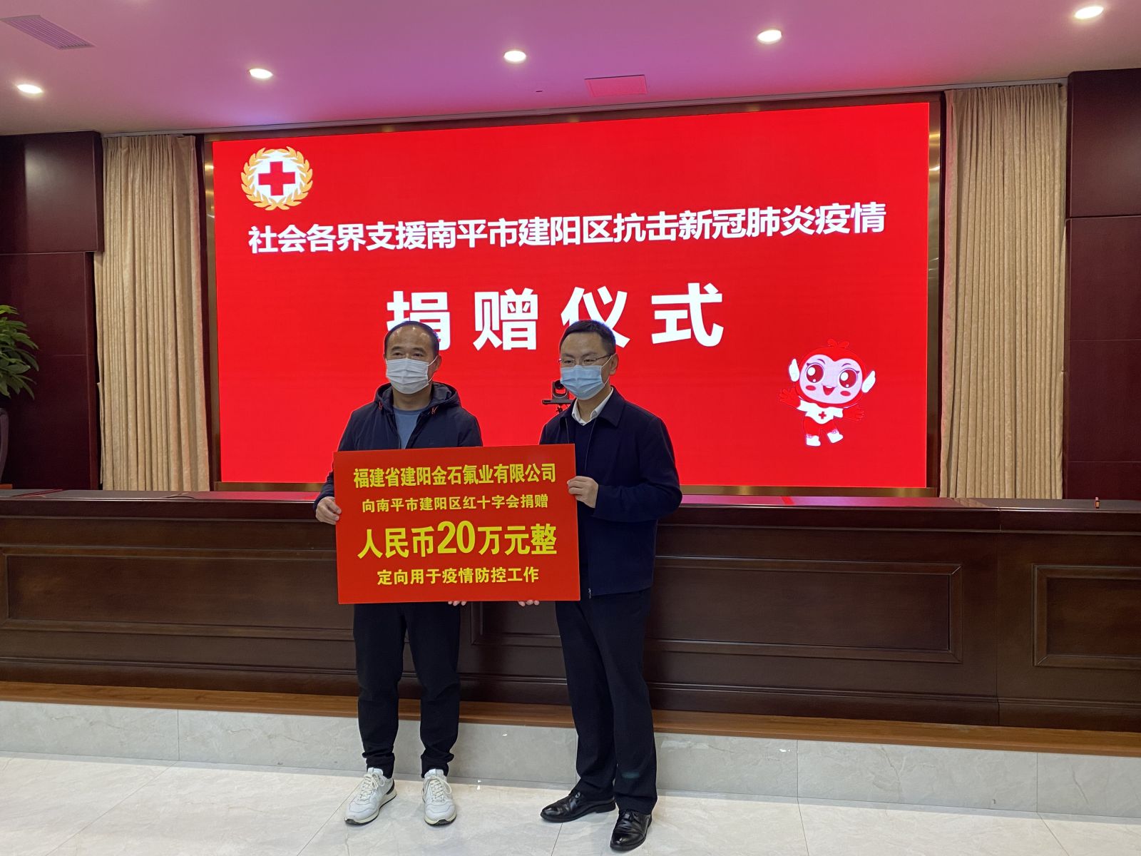 為了助力建陽區疫情防控,弘揚社會正能量,2022年3月28日下午,我司向南平市建陽區紅十字會捐贈20萬元人民幣,定向用于我區新型冠狀病毒感染的肺炎疫情防控工作,建陽區區長王沖向我司授予捐贈證書,感謝我司對紅十字公益事業的關心、支持與無私捐助,并合影留念,此次捐贈,彰顯了我司企業公民的社會責任,展現了新時代企業的形象。